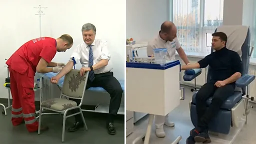 Кандидаты сдавали кровь в разных медпунктах: Порошенко - в антидопинговом центре стадиона "Олимпийский" в Киеве, Зеленский - в клинике "Евролаб".