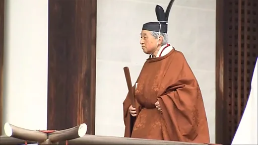 Официально он взошел на престол в среду в ходе церемонии унаследования имперских регалий (их три - зеркало, меч и яшма).