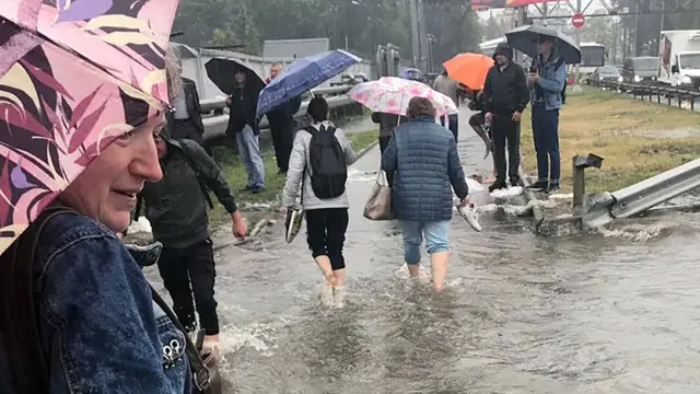 Дорогу к аэропорту Шереметьево затопило по пояс