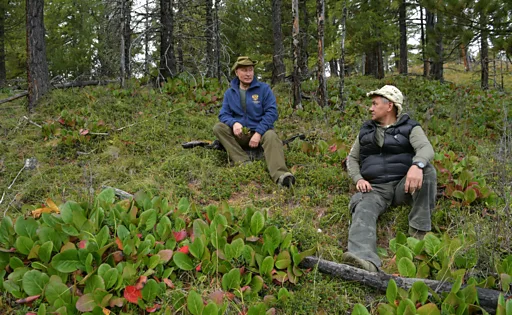 К одному из грибов, который нашел Путин, прилипла шишка, что позабавило главу государства, пишет "Российская газета". Он отлепил ее от гриба, несколько раз подул и забрал. "Сувенир. Шишечка", - сказал президент России. Шойгу же выкопал куст брусники, который Путин посоветовал ему посадить на даче.