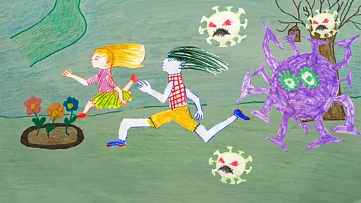 Острые зубы, страшные глаза, много рук - как представляют коронавирус дети? Мы попросили их нарисовать то, как изменился мир из-за пандемии, и вот, что получилось.