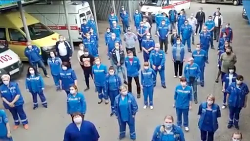16 мая в соцсетях появилось видео, на котором около 30 медиков на фоне машин скорой помощи хором заявляют о невыплате надбавок.