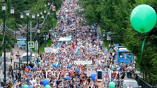 18 июля, несмотря на 30-градусную жару, в Хабаровске прошла самая массовая акция в поддержку Фургала. По разным оценкам, в ней приняли участие от 10 тысяч (данные мэрии города) до 85 тысяч (данные региональных СМИ) человек.