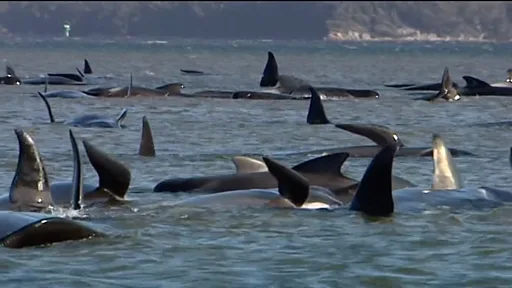 Каждый год у побережья Австралии и Новой Зеландии мигрируют стаи китообразных численностью до тысячи особей. Ученые говорят, что животные следуют за лидером, и в каждой группе существуют тесные социальные связи, поэтому на берег могут выбрасываться сразу много китов.