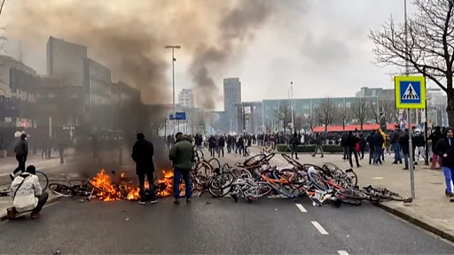 Протестующие бросали петарды, грабили супермаркеты и били витрины магазинов. В Амстердаме прошли демонстрации с меньшим числом участников.