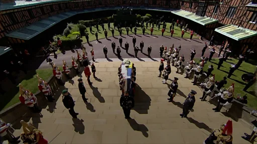 В траурной процессии к часовне Святого Георгия за автомобилем, на котором везли гроб с телом принца Филиппа, шли четверо его детей - принцы Чарльз, Эндрю и Эдвард и принцесса Анна, старшие внуки принцы Уильям и Гарри и высокопоставленные придворные.