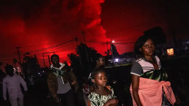 В субботу вечером в небе над городом Гома вспыхнуло мрачное зарево: из трещины в склоне вулкана Ньирагонго потекла лава.