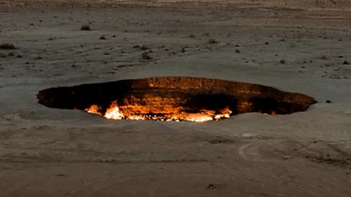 "Врата ада" раскрылись в 1971 году на месте скопления природного газа, обнаруженного советскими геологами. Бурение скважины привело к обвалу - верхние слои почвы провалились в подземную пещеру, открыв большую дыру, наполненную газом. Геологи решили поджечь газ, полагая, что со временем огонь погаснет. Однако он продолжает гореть до сих пор, и все попытки затушить пожар не увенчались успехом.