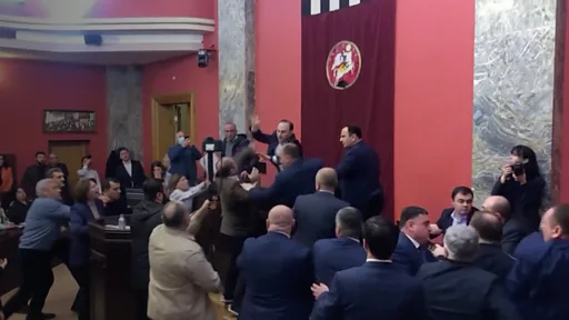 Сейчас, как сообщают грузинские СМИ, в коридорах парламента "шум и словесная перепалка". Оппозиционные депутаты требуют встречи с его председателем Шалвой Папуашвили.