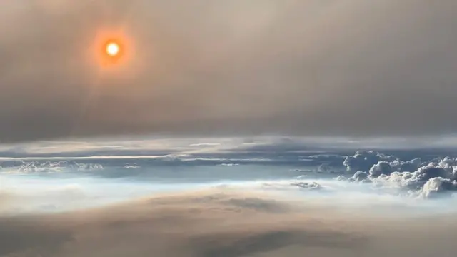 Самолет пролетел сквозь "огненные облака", фотографии были сделаны 8 августа около 20:00 по местному времени с высоты 9 км, сообщает НАСА.