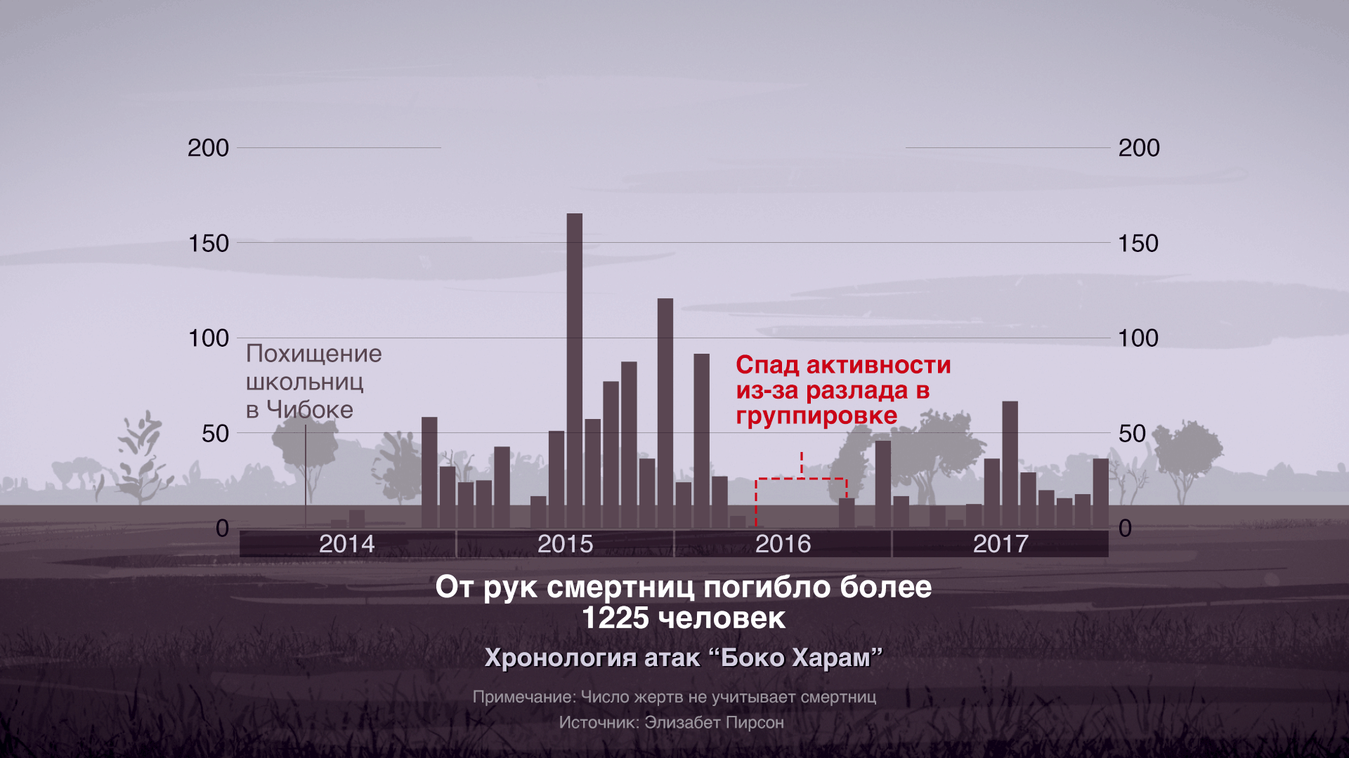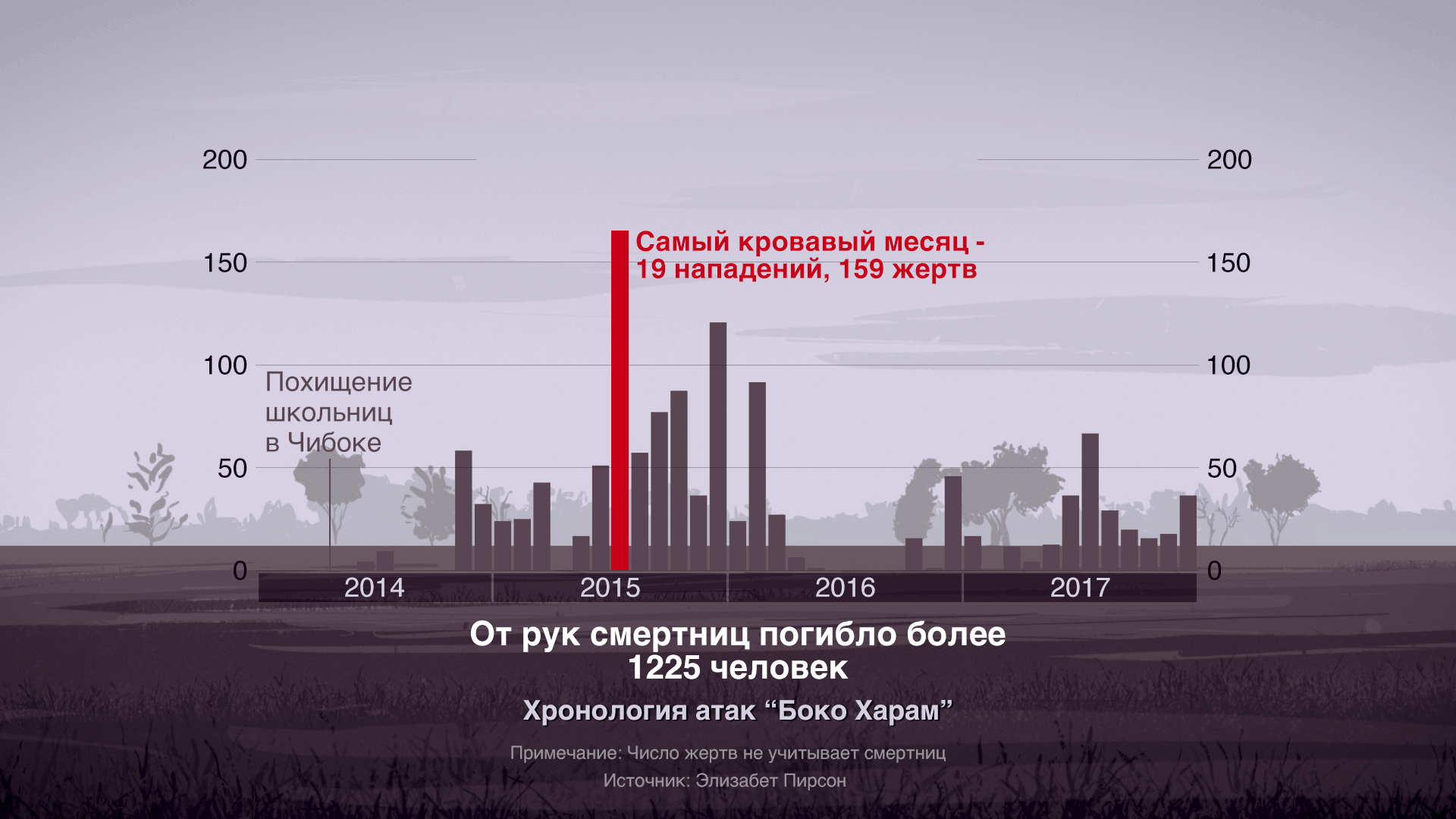 Но никто не может сравниться с “Боко харам” масштабом подобных злодеяний, замечает Элизабет Пирсон из Королевского института оборонных исследований в Лондоне.