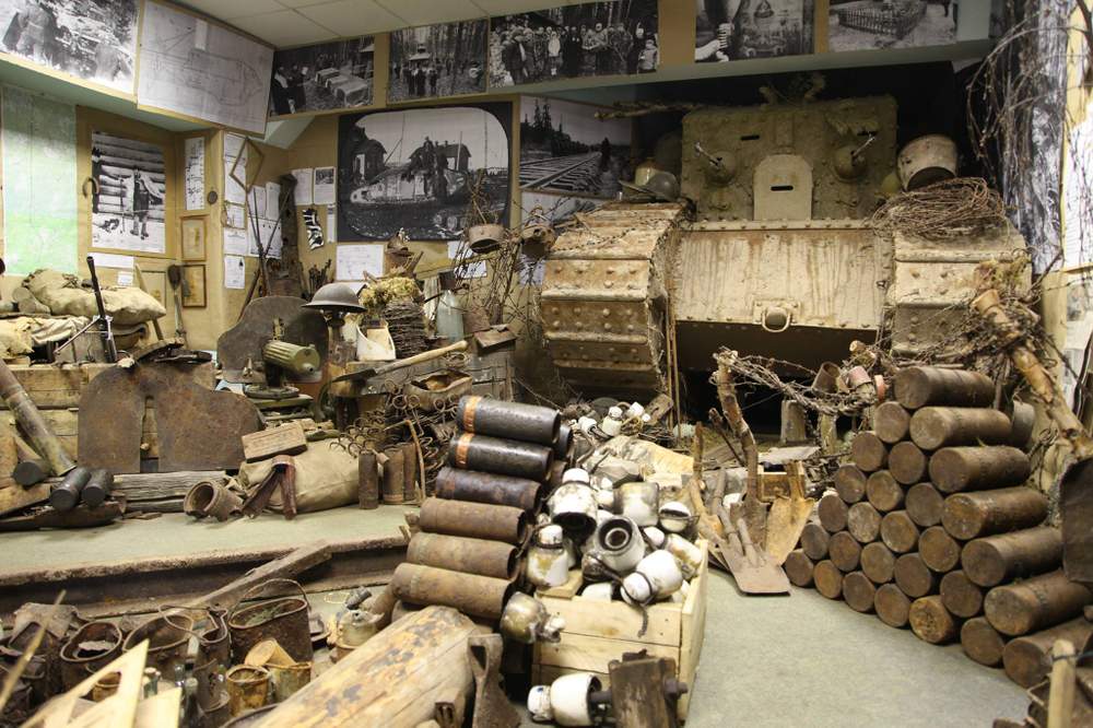 Алексей показывает найденную масленку для английской винтовки, гильзы, канистры, модель британского танка времен Первой мировой в натуральную величину – первые экспонаты он держал в своей квартире, но "ни одна жена не потерпит таких вещей дома, поэтому они переехали в офис нашего издательства и постепенно захватили тут все".