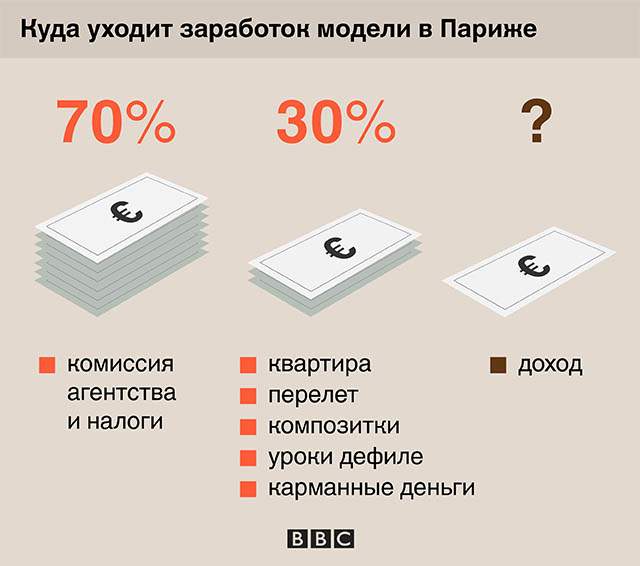Все расходы, включая распечатанные на принтере фотографии из портфолио и уроки дефиле, вычитаются из будущего заработка модели.