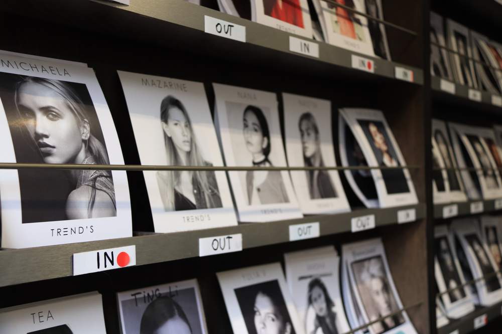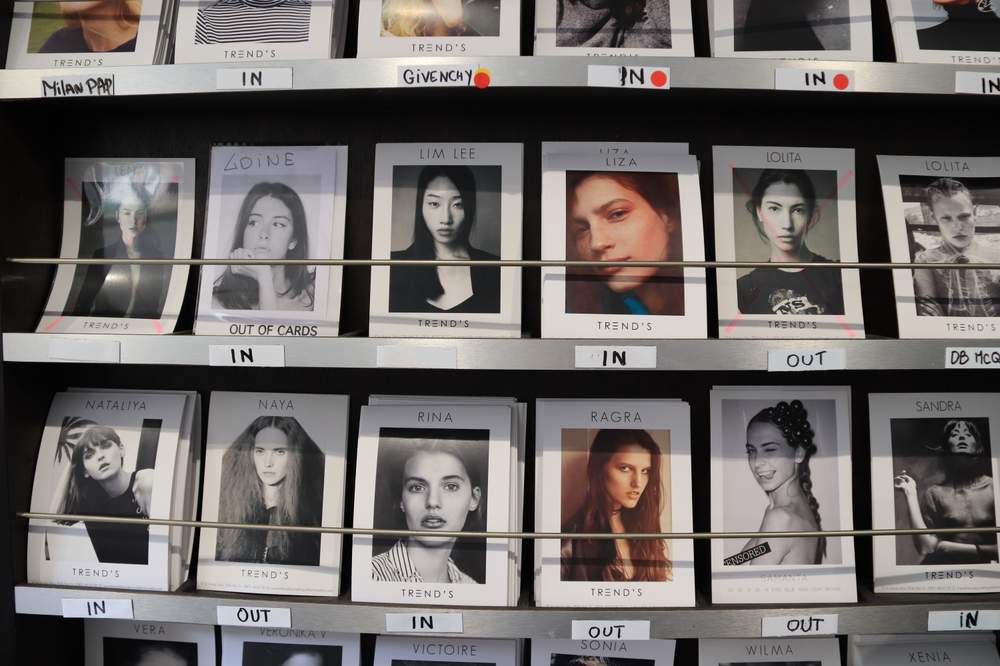 Стены в офисе плотно увешаны фотографиями моделей. Почти под каждым снимком пометка IN – "в городе". Каждая девушка знает, что в случае фиаско на кастингах, под ее фотографией появится зловещая надпись OUT.