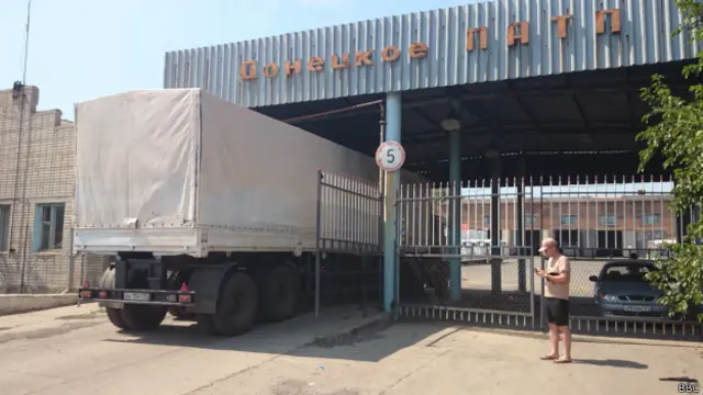 Они въехали на территорию ГУП "Донецкое ПАТП", где, как ожидают, этот груз должны осмотреть представители Международного комитета Красного Креста".