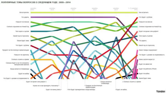 <link type="page"><caption> Сравнительный анализ запросов</caption><url href="http://company.yandex.ru/i/researches/2014/next_year/ya_next_year.png" platform="highweb"/></link> "Яндекса" показал, что у пользователей вновь стала актуальна тема экономического кризиса. Из 15 самых популярных запросов семь так или иначе посвящены экономической теме. Отдельной строкой "Яндекс" выделяет вопрос о возможном отключении iPhone с 1 января.