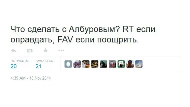 "Хм, какой интересный отрывок из моего уголовного дела", - <link type="page"><caption> написал</caption><url href="https://twitter.com/alburov/status/532866302051098624" platform="highweb"/></link> Георгий Албуров (@alburov).