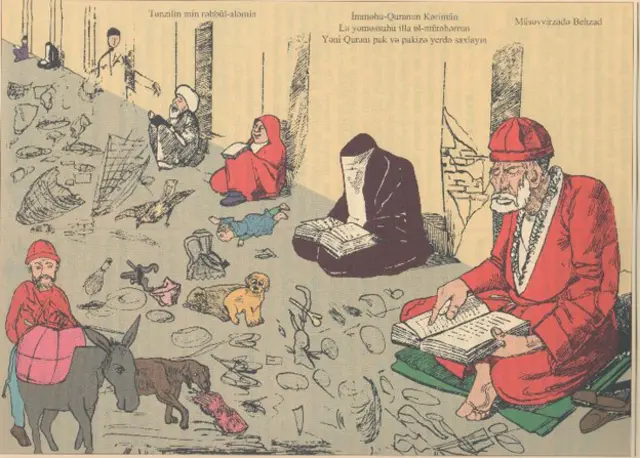 Азербайджанский еженедельный журнал "Молла Насреддин" печатал революционные по тем временам материалы, высмеивая и русского царя, и иранского шаха.