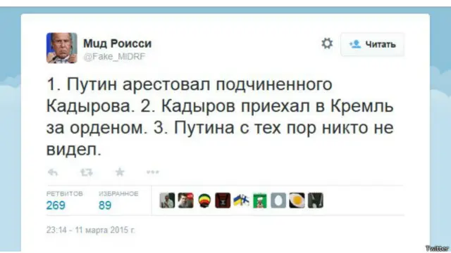 "Владимир Владимирович не болен - он гибридно здоров", - припоминают словосочетание "<link type="page"><caption> гибридная война</caption><url href="http://www.bbc.co.uk/russian/international/2014/12/141106_nato_russian_strategy" platform="highweb"/></link>" в аккаунте "Мухи-глухи".