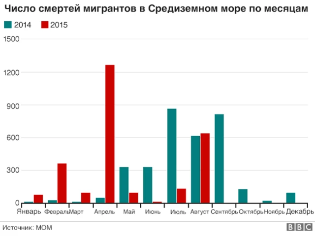 Обычно во время летних месяцев смертей фиксируется больше. Но в этом году самым трагическим оказался апрель, когда перевернулось судно, перевозившее 800 человек.