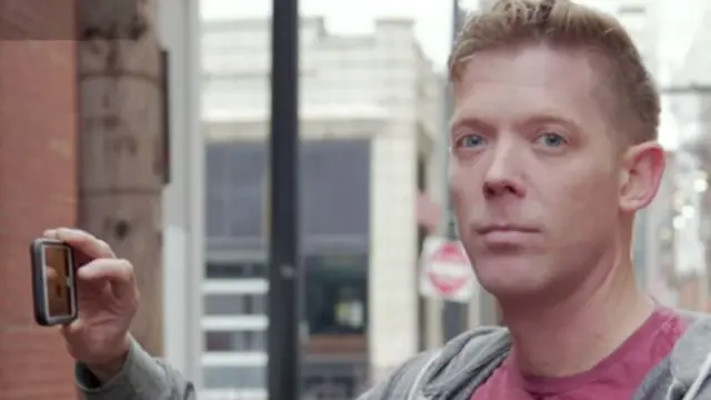 "Меня зовут Джефф, и я – инстаграмный муж, - говорит молодой мужчина. - За каждой красивой девушкой из "Инстаграма" стоит мужчина вроде меня. И кирпичная стена".