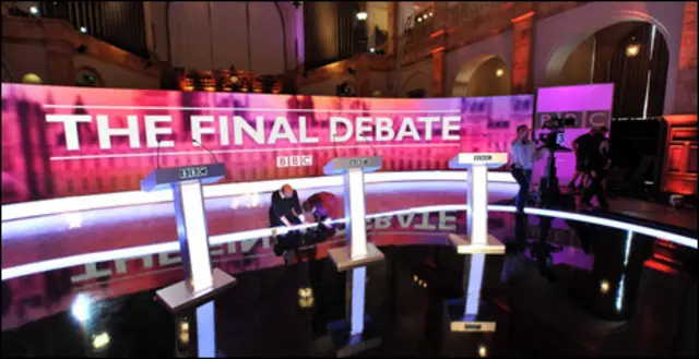 Дебаты проходили в самой большой аудитории Бирмингемского университета и транслировались в прямом эфире телеканала Би-би-си.
