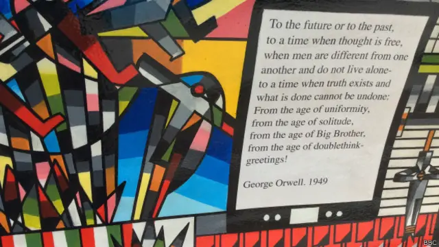 "Многие мои работы связаны с темой "Большого брата", камерами слежения, тоталитарным обществом и тому подобным. Эти темы меня волнуют, поскольку, на мой взгляд, все это сейчас набирает силу, но мы меньше об этом задумываемся, чем, скажем, предыдущее поколение. И к тому же я большой поклонник вортицизма, футуризма и конструктивизма - течений, в основе которых было преклонение перед механистичностью индустриального общества. И я вижу повторение этого, только в цифровом, а не в индустриальном контексте", - поведал мне создатель оруэлловской лавочки художник Томас Даудсвелл.