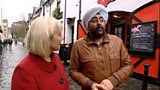 18/40Tha Cathy NicDhòmhnaill cuide ris an sgrìobhadair is craoladair Hardeep Singh Kohli.(R)