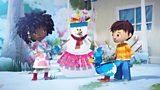 Tha am bodach sneachd aig Zack ann an cunnart. Zack's snowman is in danger of melting.(R)