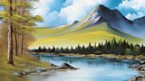 20/26Bob Ross paints a mountain scene, featuring a crystal lake and rocky banks.(R)