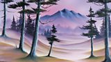 20/26Bob Ross paints a group of tall trees in the foothills of a distant, blue-grey mountain.(R)