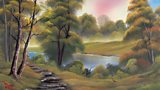 22/26Bob Ross paints a path in the wilderness leading to the side of a still lake.(R)