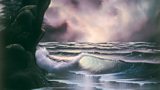 32/52Bob Ross paints a breathtakingly beautiful seascape on black canvas.
