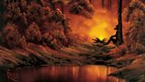 20/52Bob Ross paints a cowboy resting awhile by the crackling flames of a campfire.(R)