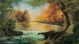 48/52Bob Ross creates a beautiful golden, warm waterfall scene. Come and join in the fun!