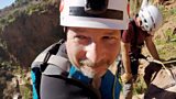 The adventurers row across a huge reservoir in the foothills of the Atlas Mountains.