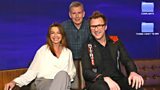 3/6Patrick Kielty invites Suzi Perry and Jason Byrne to hand over their laptops.