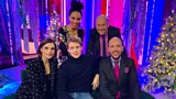 Gyles Brandreth and Michelle Ackerley with Tom Allen, Charlotte Riley and Joe Alwyn.