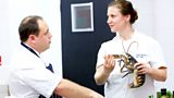 32/45Richard Davies, James Sommerin and Stephen Terry cook their fish course.(R)