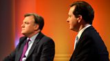 Sophie Raworth is joined by George Osborne, Ed Balls, Kim Cattrall and Russell Brand.