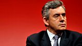 Jeremy Paxman quizzes Prime Minister Gordon Brown.(R)