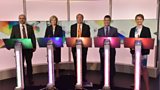 Huw Edwards is joined by a panel of party leaders at the Sherman Theatre.(R)