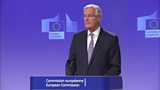 The EU's chief negotiator for Brexit, Michel Barnier, holding a news conference.