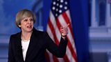 Prime minister Theresa May making a speech to Republican policymakers in Philadelphia.