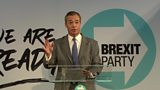 Brexit Party Leader Nigel Farage MEP speaking at a party event in London.