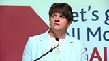 Democratic Unionist Party leader Arlene Foster launching her party's election manifesto.(R)