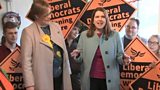 Coverage of Liberal Democrat leader Jo Swinson speaking at a campaign event in Guildford.