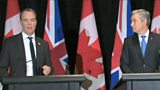 Dominic Raab and Francois-Philippe Champagne holding a news conference on 10 January.