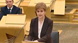 Coverage of a statement by Nicola Sturgeon on new Covid-19 restrictions in Scotland.