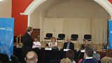 Dewi Llwyd sy'n teithio i Gemaes i ganfod barn y bobl am bynciau llosg y dydd.(A)